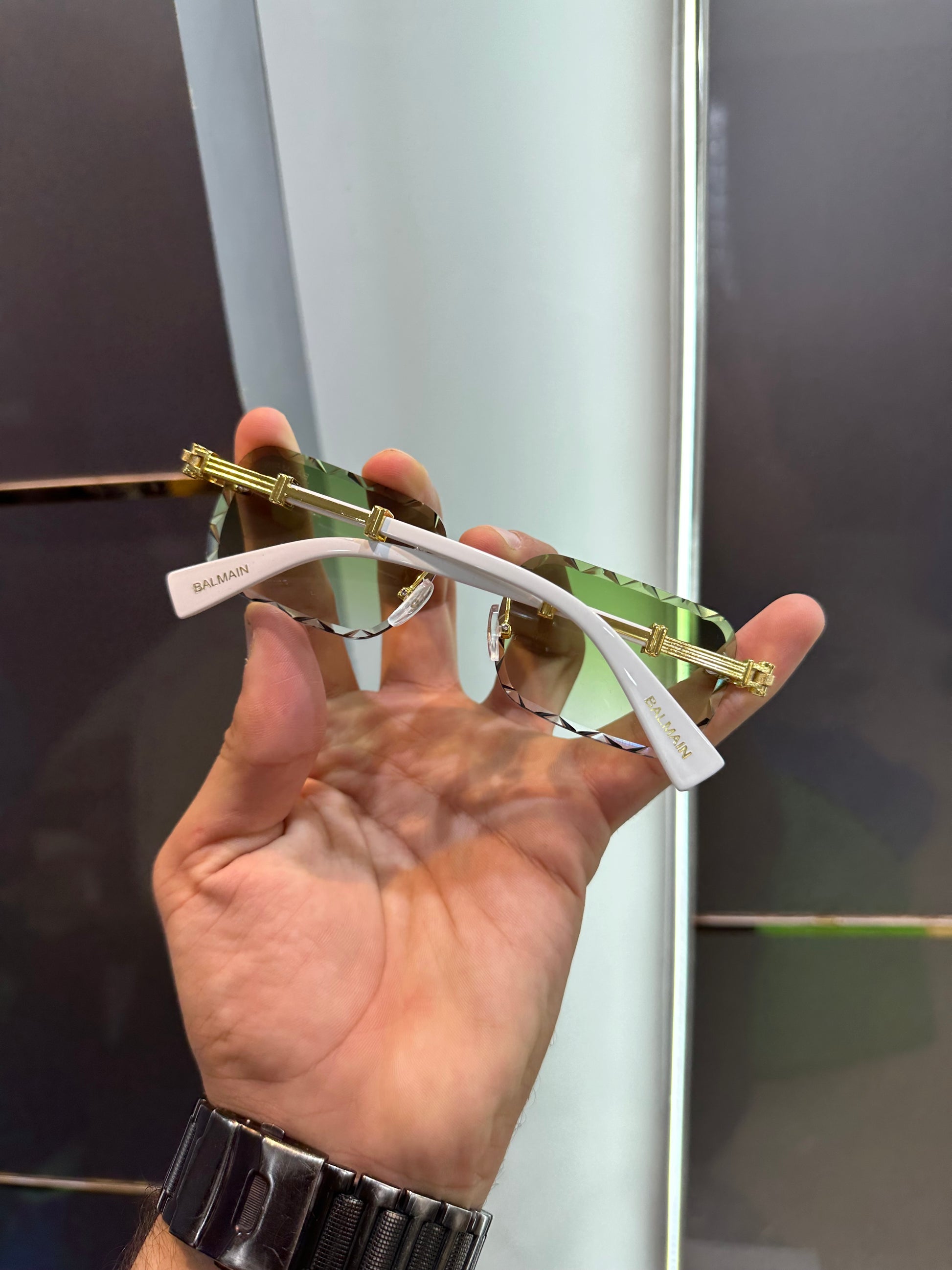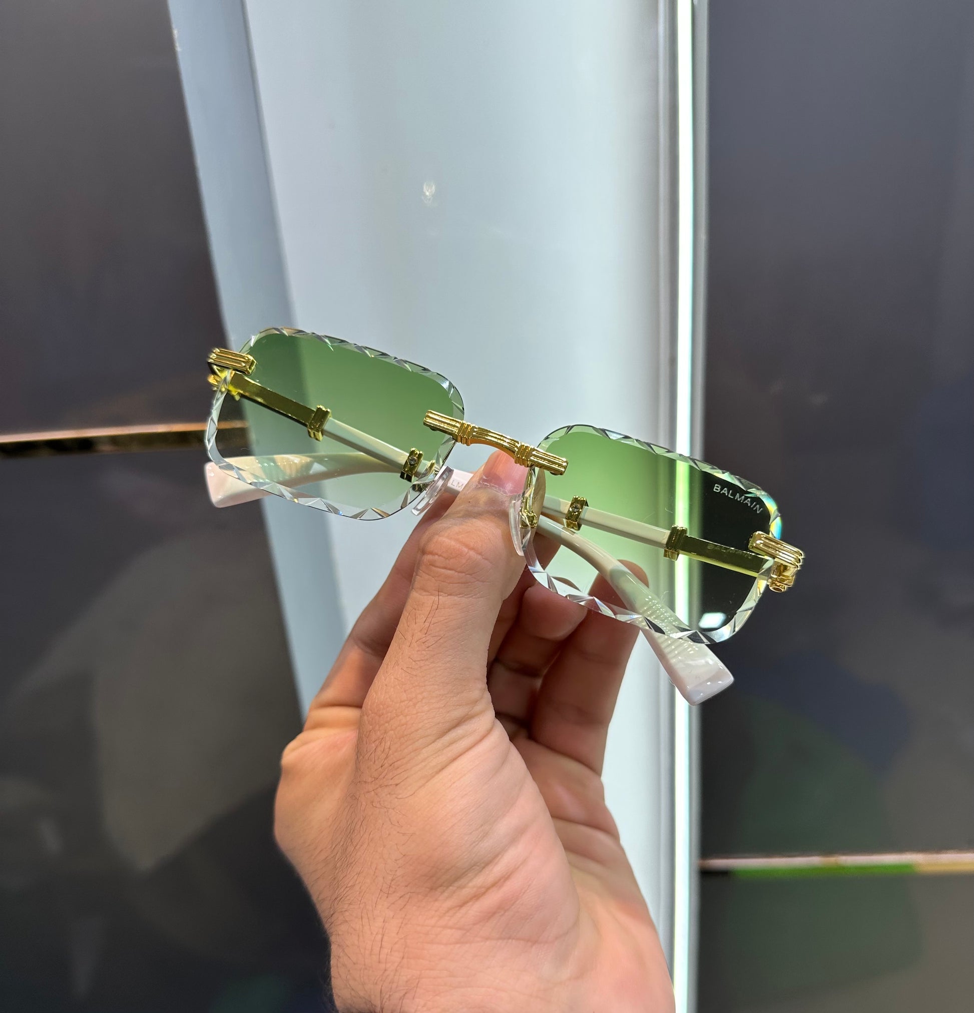 Balmain Paris Green White Look Designer Luxury Sunglasses With Original Packing