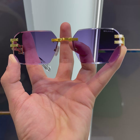 Balmain Paris Purple Wooden Look Designer Luxury Sunglasses With Original Packing